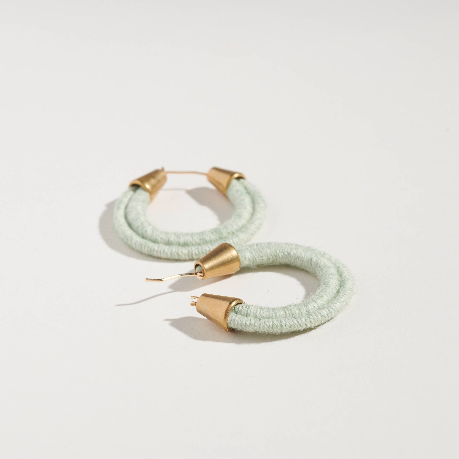 Meet the biggest star among our trio of hoop earrings! These everyday oversized hoops are crafted from our slimmest cording, lovingly wrapped in your favorite fiber. Even the hinge is wrapped to keep things sleek and stylish. Featured here in fresh Mint Wool, these 18K gold-plated hoops sparkle with fun and flair. Nickel-free posts and a perfect 1.5" width and drop make these hoops a playful staple for any day.