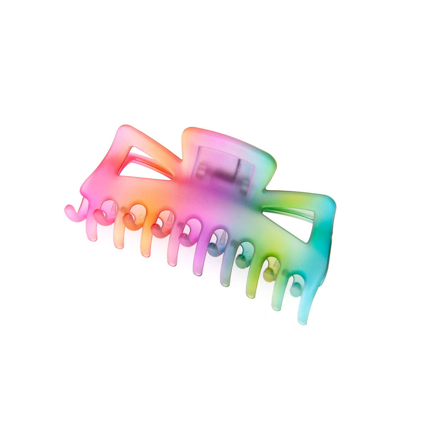 Brighten up your look with our Rainbow Colored Hair Claw! This vibrant accessory adds a pop of color to any outfit, offering a secure and stylish hold that lasts all day. Whether you're taming your locks or adding a playful touch to your style, the rainbow design brings fun and flair to your everyday hair routine. Perfect for all hair types, it's the ideal blend of function and fashion—turn heads wherever you go with this cheerful, eye-catching claw! Size: 4".