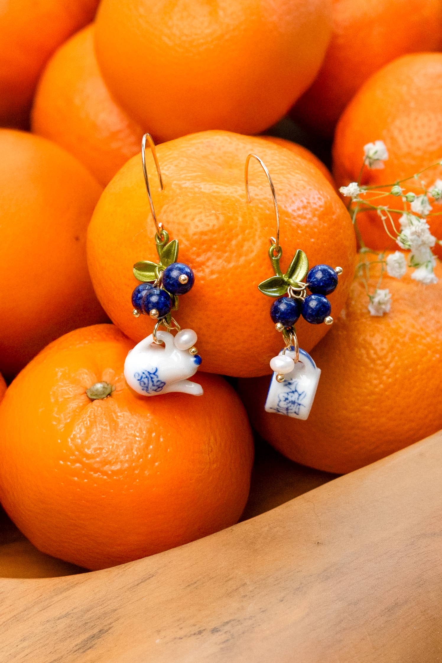 These charming earrings sparkle with 18k gold plating over brass, featuring enamel, ceramic, and a freshwater pearl. Measuring about 2" long, they’re water-resistant, nickel- and lead-free, and crafted in the USA using ethically sourced materials. Perfect for adding a little fun flair to your look!