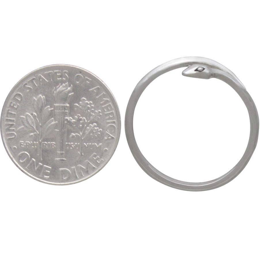 Simple, slender, and dainty, this adjustable snake ring appeals to even those with the most delicate tastes. It's a little witchy, a little dark, without going over to the dark side. BONUS: this serpent ring is adjustable, and tapers off in the most feminine of ways. Symbolically speaking, snakes are often seen as portals between two worlds, as a re-imagining of oneself. Serpents teach us to remake our lives over and over, that change is always on the horizon, and to embrace it. Made from Recycled Silver. We recommend removing bronze rings when washing hands and showering. We recommend adjusting this ring to the correct size and then leaving it alone. Excessive opening and closing can weaken the band.