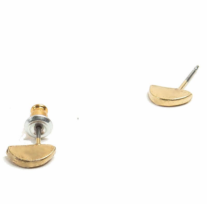 Crescent-shaped studs crafted by hand, finished in gleaming gold plate. Secured with reliable bullet clutch backs that keep them exactly where they belong.