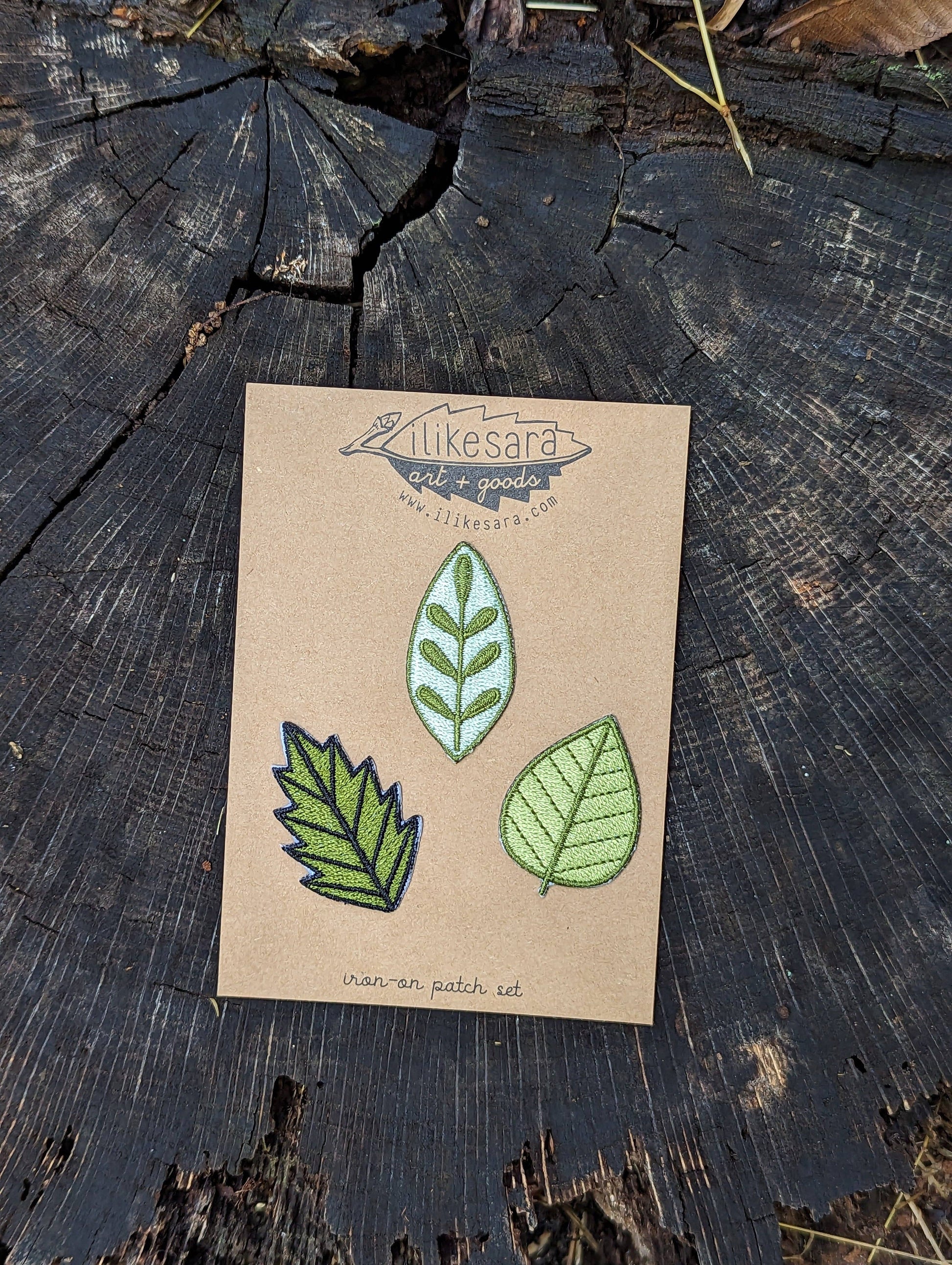 Bring a touch of botanical charm to your wardrobe with this delightful trio of leaf iron-on patches! Inspired by the whimsical artwork of Sara Schalliol-Hodge, these nature-themed patches are the perfect size—roughly 1.5"-1.75" long and 1" wide—to elevate backpacks, jackets, tees, and beyond. Each patch features iron-on backing for easy application and comes mounted on cardstock with detailed instructions. Simply heat-press for 30-45 seconds on each side, let cool, and you're done. For frequently washed items, sewing is recommended for extra durability. Arrives in a protective cellophane sleeve, ready to add that extra leaf magic wherever you need it!