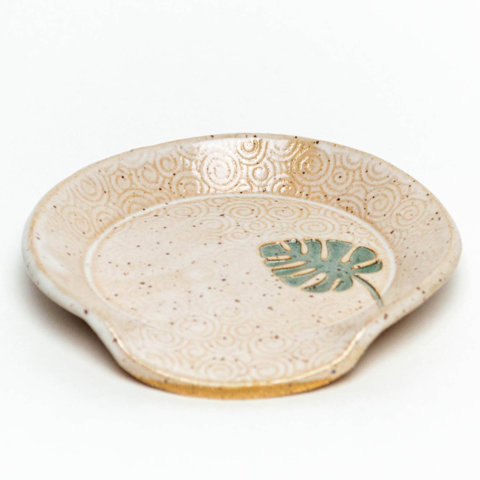Bring a touch of tropical charm to your kitchen with this beautiful stoneware ceramic monstera patterned spoon rest! Hand-built and hand-glazed with care in Oberlin, Ohio, this stylish piece measures approximately 4 1/4 inches wide—perfect for keeping your counters tidy while you cook. It’s food, dishwasher, and microwave safe, blending beauty with everyday practicality. Each spoon rest is uniquely handmade, so no two are ever exactly alike, with lovely variations in color and glaze patterns. A delightful way to add a bit of leafy elegance to your kitchen!