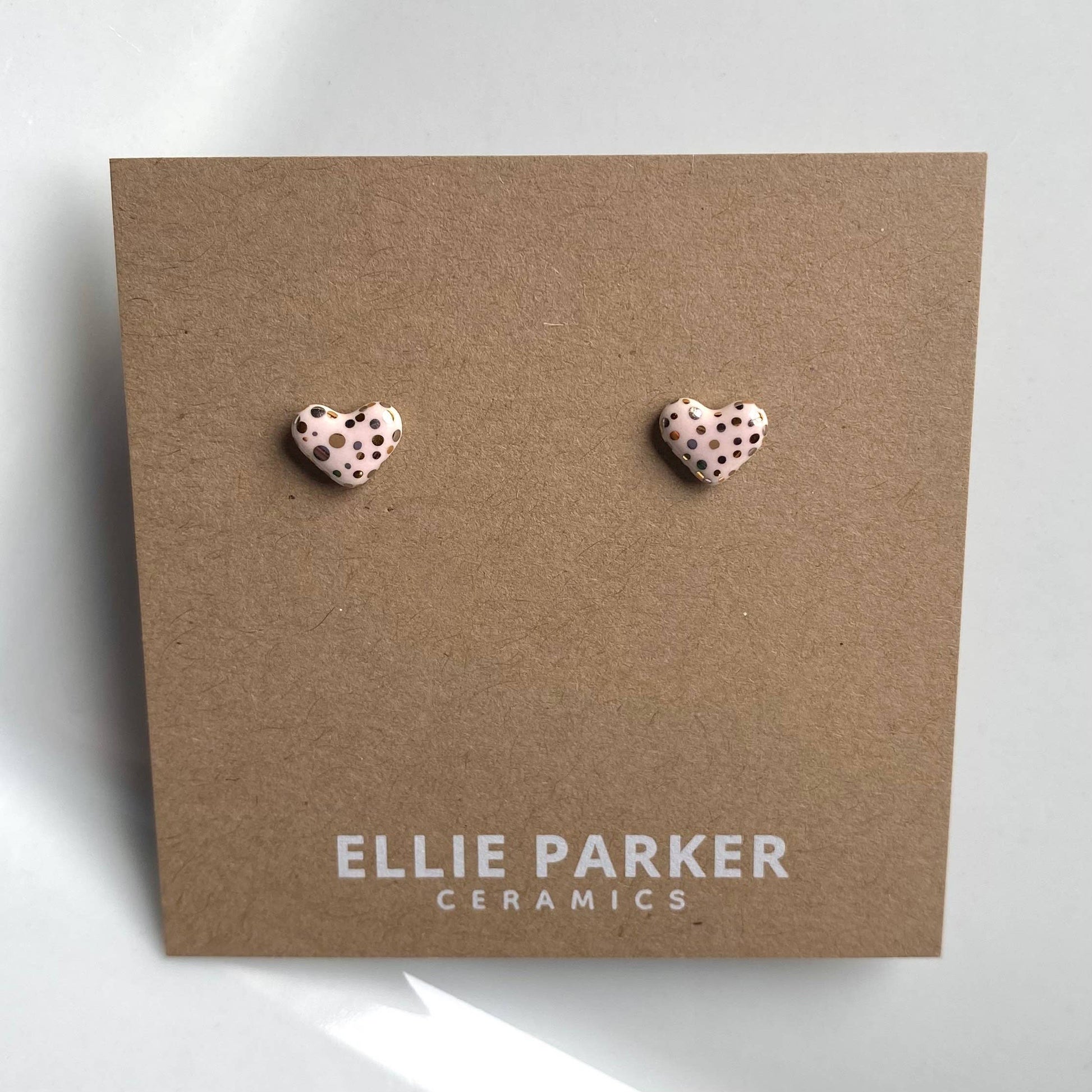 Polka Dot Ceramic Pink Heart with Gold Luster