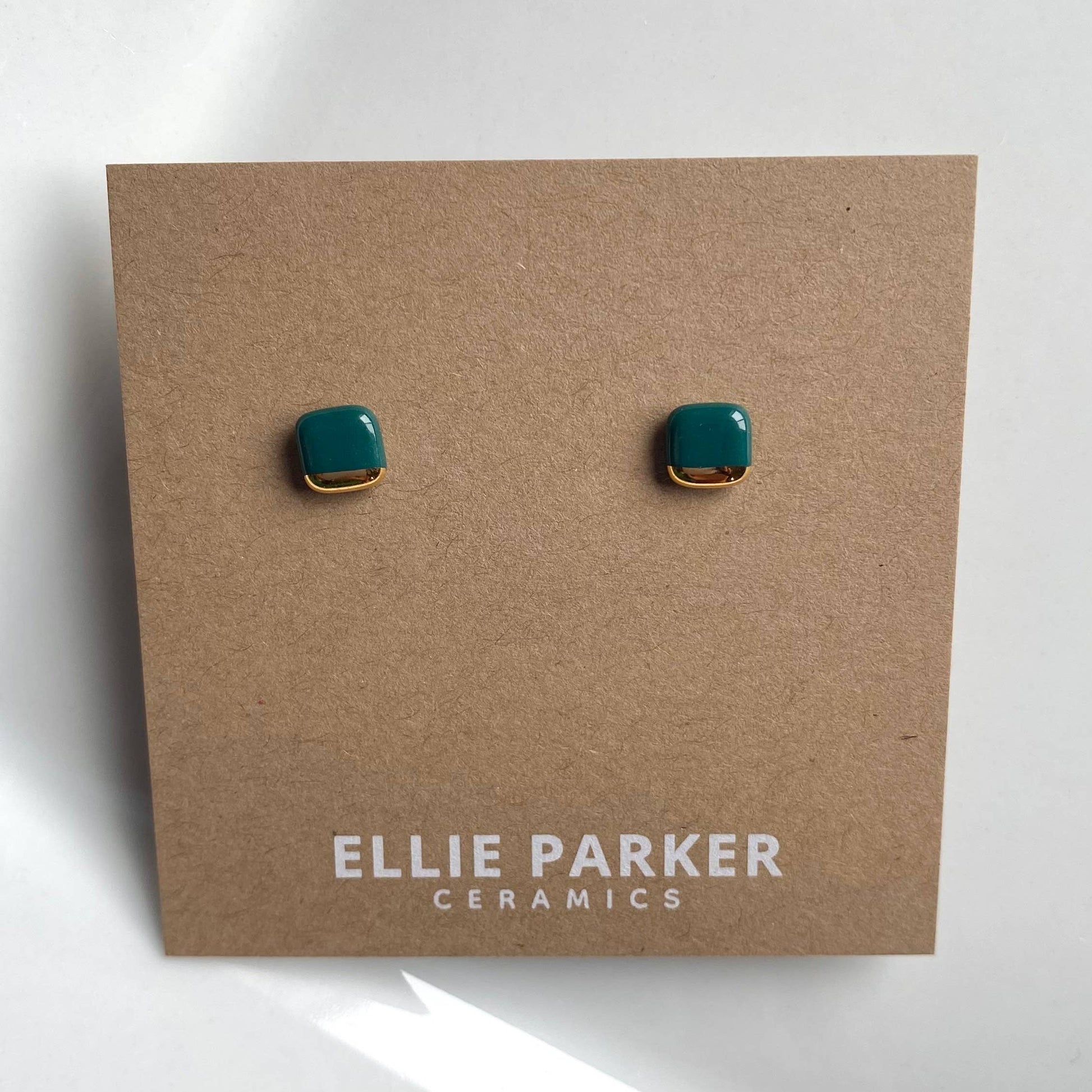 Square Teal Ceramic Earrings with Gold Luster