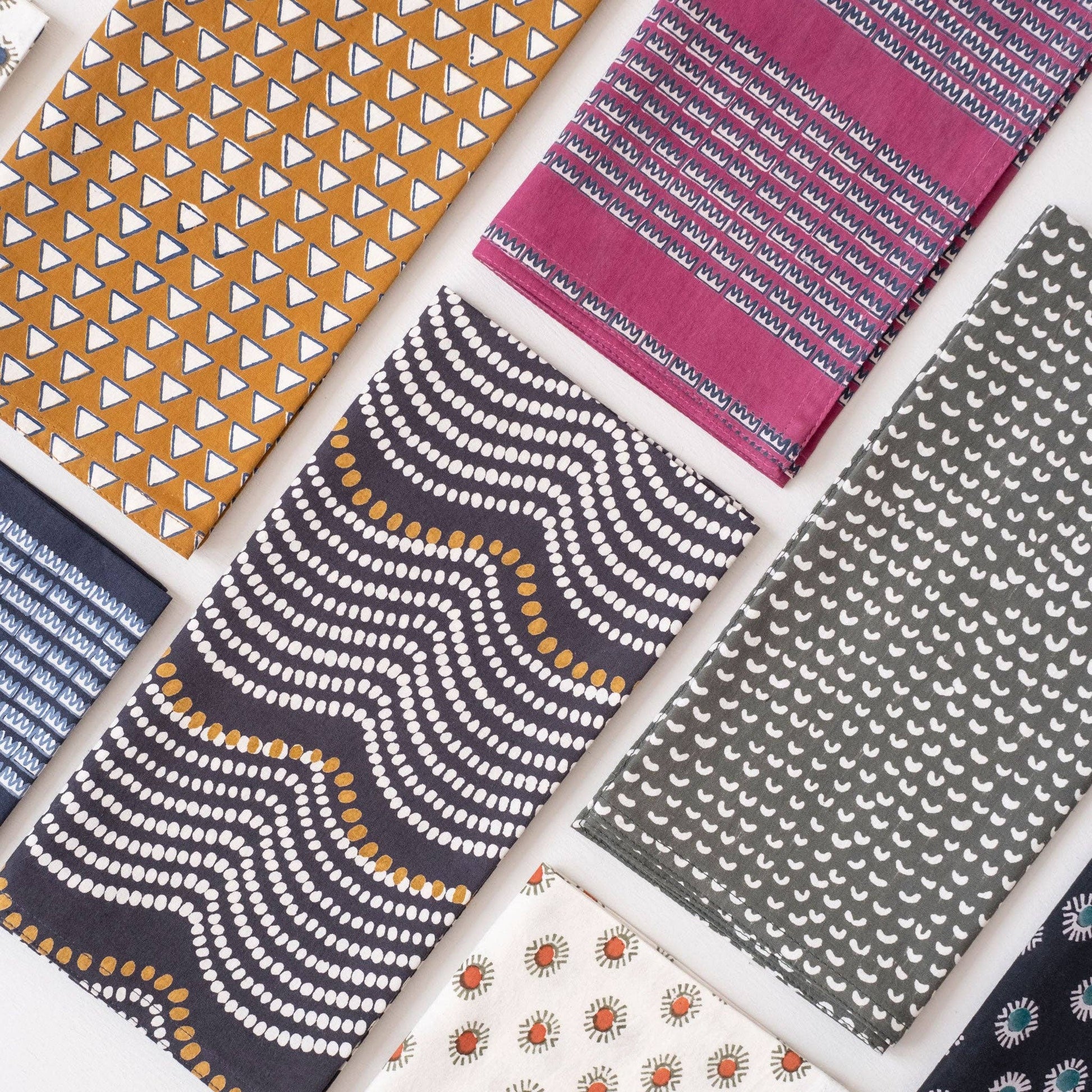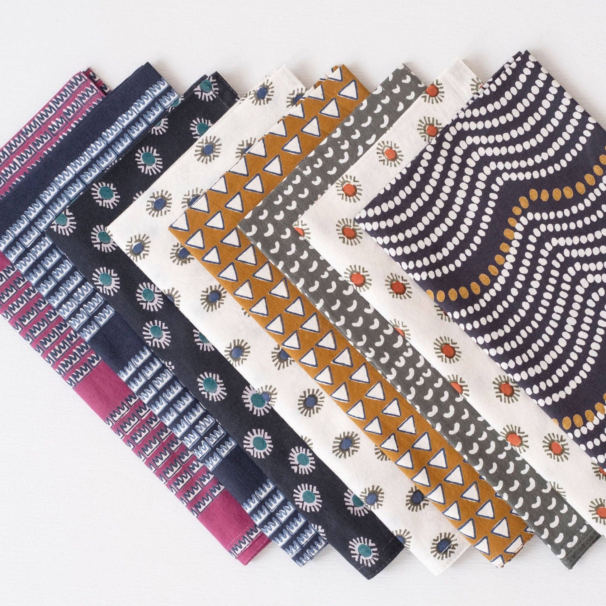 Our block printed napkins are fun, easy to care for and pair wonderfully with our tablecloths. An easy, eco friendly alternative to paper towels, they come in an array of designs that can be mixed and matched. We love using them for our casual everyday table, and also for fancier meals.