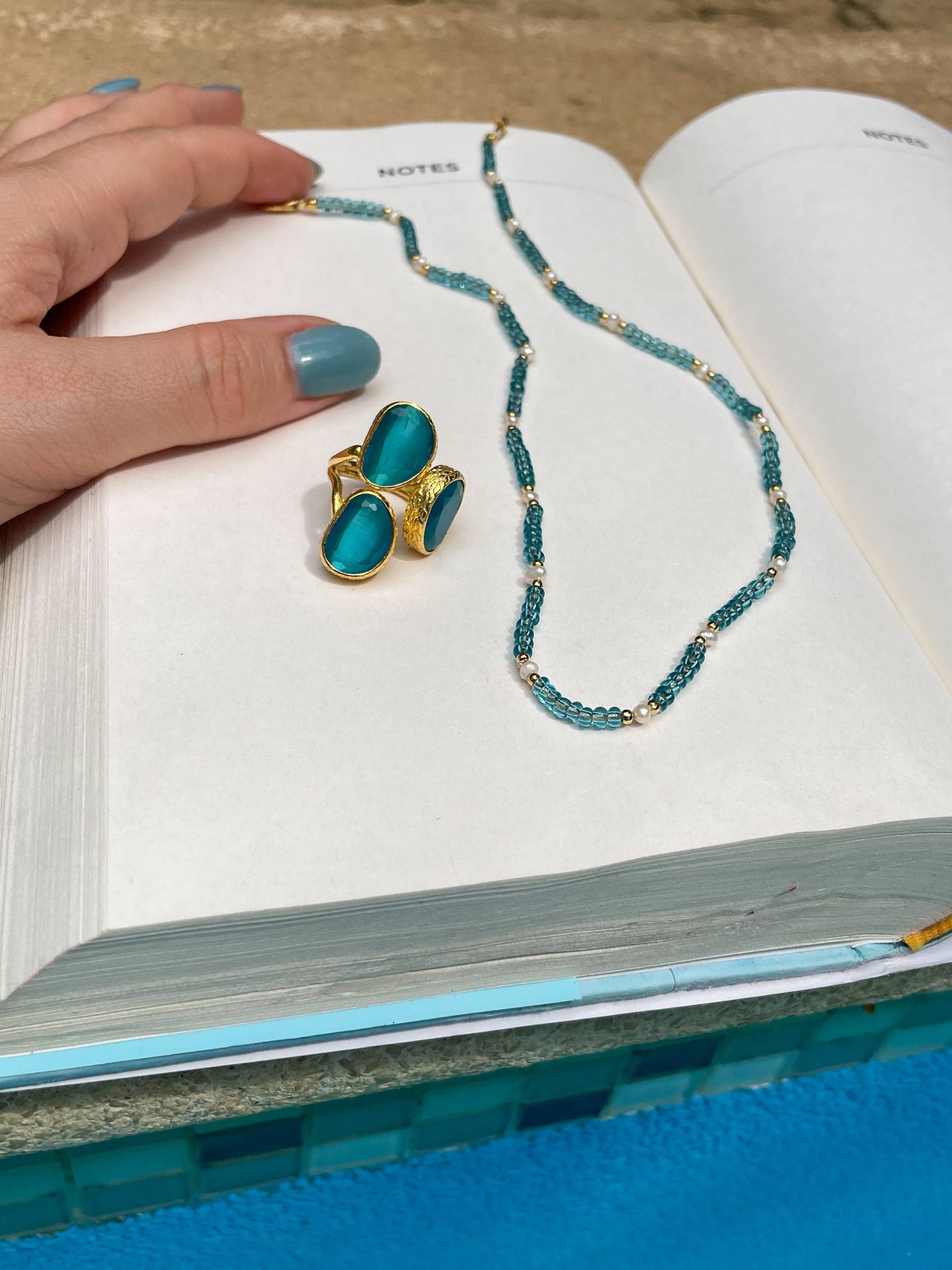 This elegant ring is crafted from bronze with a luxurious gold plating and features an adjustable band to ensure a perfect fit.