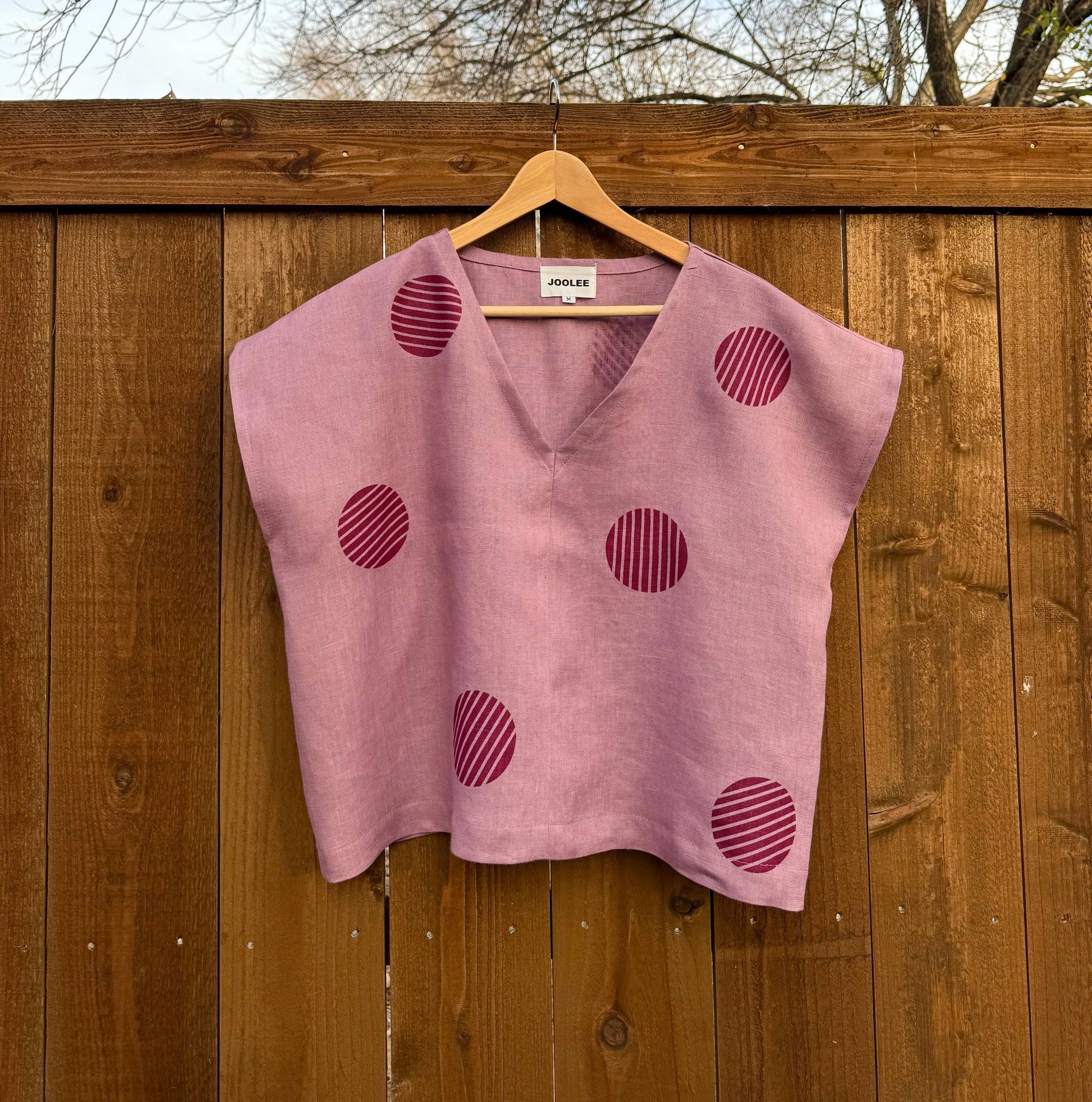 Handmade with 100% high quality linen. Comfortable fit. V neck. Length about 22-243 inches. Size chart. S is US size 4-6 M is us size 8-10 L is US size 12.
