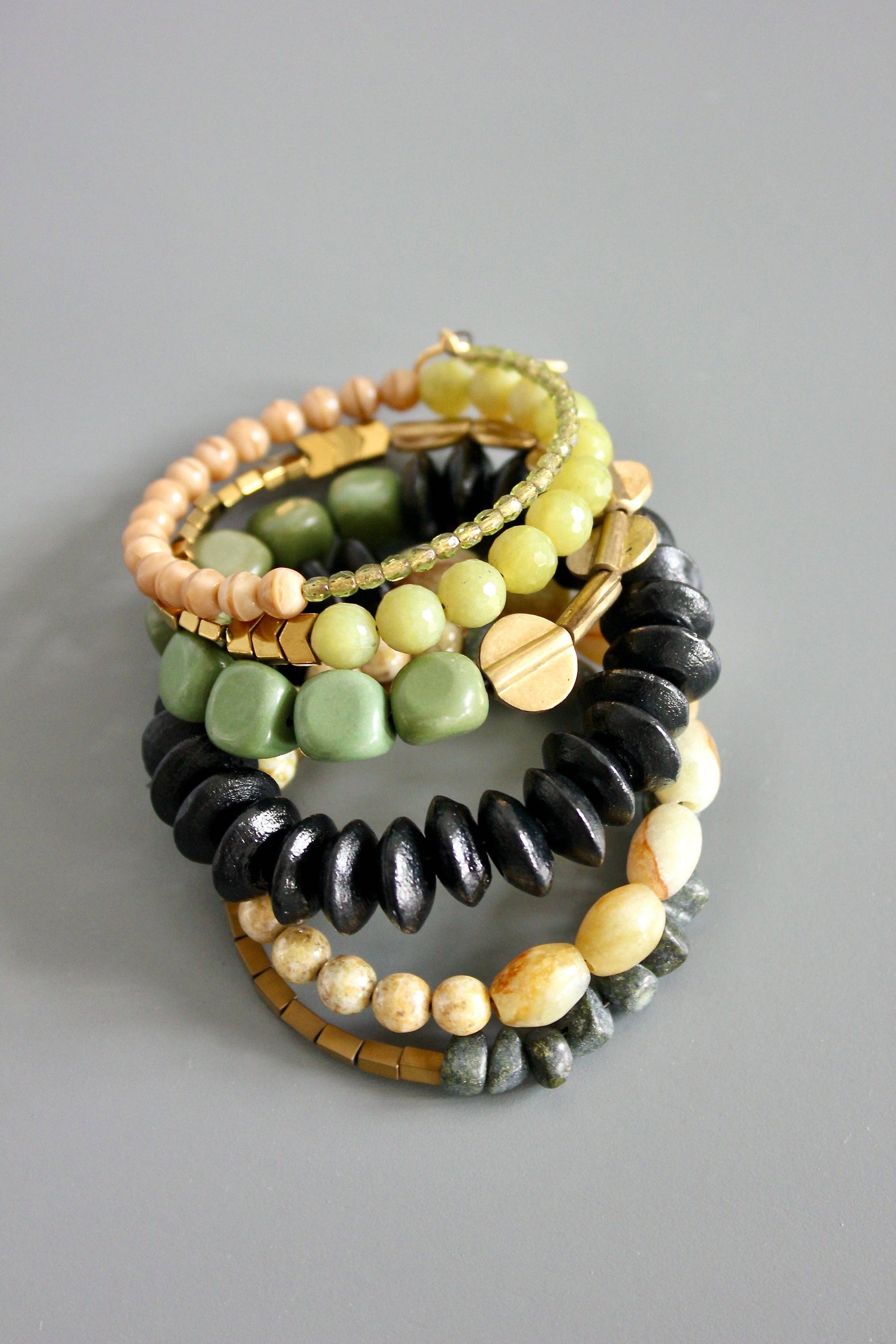 42 inch wrap bracelet with glass, plated hematite, jade, brass, wood, and serpentine. All pieces are made to order and handcrafted at our studio in New Jersey by skilled artisans who share our passion for quality and originality. Each piece is unique so stones and glass may vary in shape, size, and color. Stone inclusions may be visible to the eye and are considered a part of their beauty. Our jewelry consists of plated metal, which may darken or tarnish over time with normal wear. Gently wipe the metal surface with a soft cloth to clean, however, excessive polishing may rub off or scratch the plating. Avoid direct contact with lotions, perfumes, or oils. Excessive light, heat, or moisture will deteriorate the quality of glass, plating, and stones. Do not wear jewelry while in a pool, hot tub, or bathing. If treated with care, your jewelry will last for years to come.