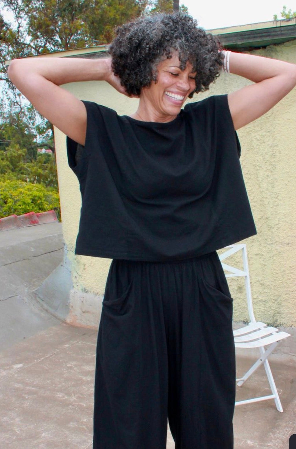 The Jones is designed with a nice relaxed and boxy fit, set up to complement your high waist pants. This item is garment dyed, making it pre-shrunk + easy in the washing machine. Made in San Francisco. 65% Tencel 35% Cotton.Wash Cold, dry low.