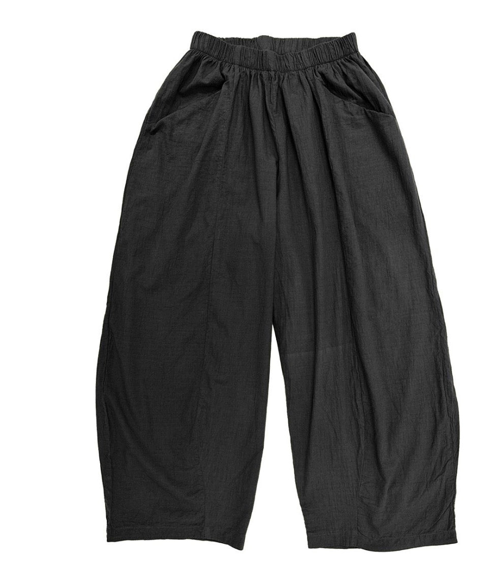 Created in the perfect light weight cotton/tencel for the hot days. These pants feature a relaxed wide leg crop style made in the lightest weight cotton. Comfort is king in these pants which features a soft elastic waist band, easy fit and side pockets. 65% Tencel 35% Cotton.