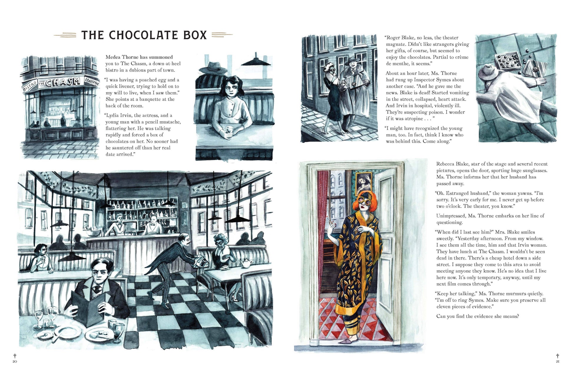 Murder Most Puzzling is a gorgeous and witty book that invites readers to play detective and solve a series of absorbing, murder-mystery-themed puzzles. Readers are cast as the faithful sidekick to amateur sleuth Medea Thorne in order to solve 20 puzzling cases. Meet a cast of colorful characters—from ghost hunter extraordinaire Augustin Artaud, to Leonard Fanshawe, a competitor in the Annual Perfect Pickled Foods Festival. A witty riff on the classic whodunit that brings out everyone's inner detective Each mystery is sumptuously illustrated. The mysteries require different deductive tactics, making them a good brain exercise A body in the topiary garden, a death at a clairvoyants' convention, and the mysterious accident of the boating lake—prepare for a whirlwind adventure, laced with humor and a dash of the macabre.