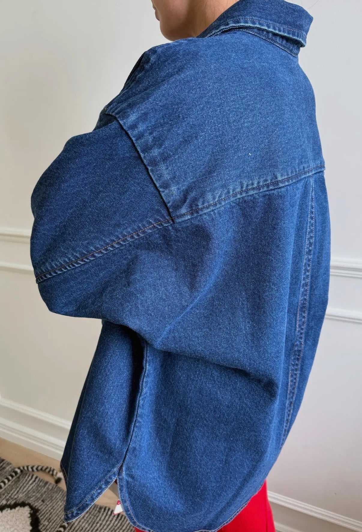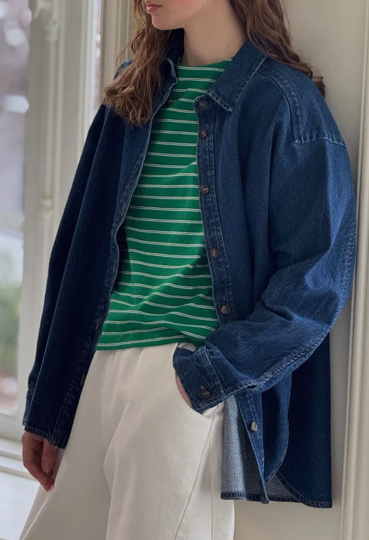 The classic denim shirt, reimagined. It fits like the perfect vintage '90s piece—slightly oversized and relaxed for easy layering, or wear it as a lightweight jacket. Made from 100% heavy cotton denim, it's soft yet durable, ideal for both casual and elevated looks. Featuring functional buttons, contrast stitching, and a classic rounded hem, it's a timeless, versatile wardrobe essential that transcends time.