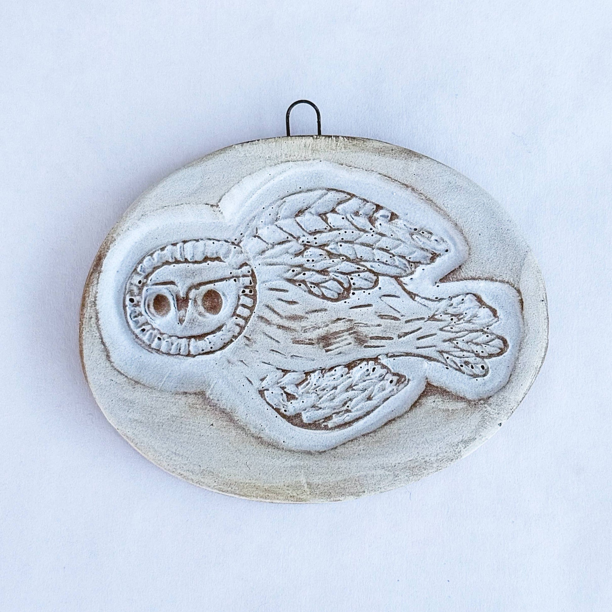 Hand crafted using a one-of-a-kind hand-carved stamps. Stoneware, Matte Glaze. Approximately 2 3/4” x 3 1/2" x1/4". Easy to hang with built in metal hanging loop. No two are ever exactly the same. These stamps are small, quiet tools, but they hold a lot of history. Many of the patterns are inspired by the artist's Hungarian heritage, the folk motifs and symbols she grew up seeing and feeling, mixed with forms pulled from nature and the simple devotion found in milagros. They carry a sense of protection, gratitude, and everyday reverence. Because the stamps are handmade and used by hand, each tile comes out slightly different. A curve here, a deeper impression there. Those variations are not flaws, they are the evidence of touch.